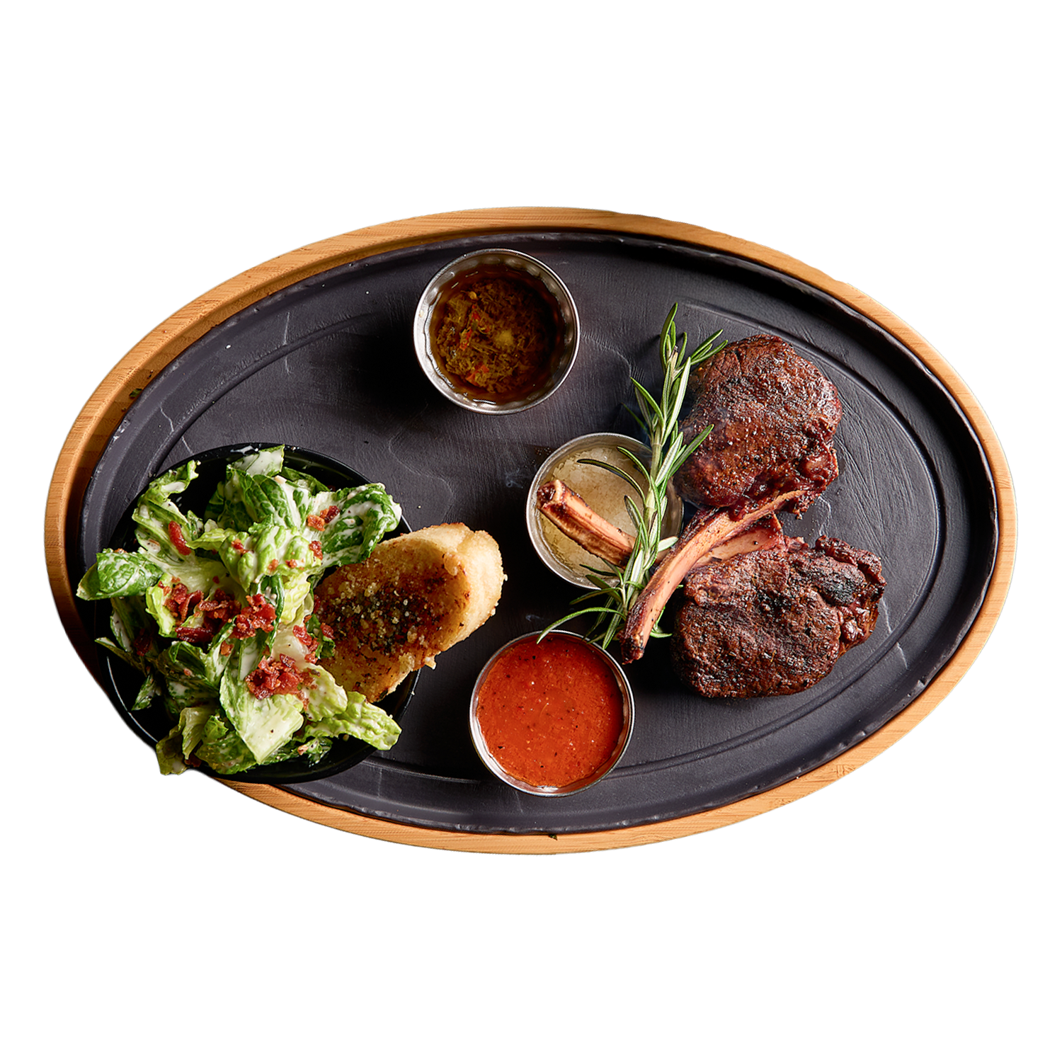 Grilled Bone Marrow With Minced Garlic, Rosemary-Truffle Sea Salt, Brioche Toast and Chimichurri Sauce